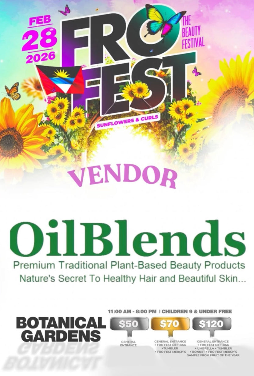 • Customer with afro hair holding OilBlends Jamaican Black Castor Oil, highlighting natural hair growth, strengthening, and moisturizing benefits. Perfect for promoting healthy, fuller hair with plant-based, chemical-free ingredients. fro festival 2026 antigua, natural long hair